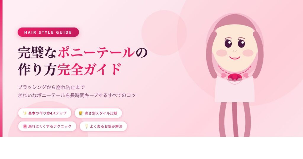 完璧なポニーテールの作り方|ヘアスタイルガイド HAIR STYLE GUIDE 完璧なポニーテールの作り方完全ガイド ブラッシングから崩れ防止まで、きれいなポニーテールを長時間キープするすべてのコツをまとめました。 SECTION 01 基本のポニーテール ブラッシ... -